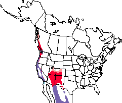 Living along much of the Pacific Coast, Band-tailed Pigeons are found in low- and mid-elevation forests. Conifer and mixed coniferous/deciduous habitats are both used, as long as there are some large conifers. Band-tailed Pigeons prefer forest edges--open sites bordered by tall conifers, a habitat type often found in city parks and suburban developments. In the early breeding season, mineral springs and tidal flats become important. Towards the end of the breeding season, many birds migrate to higher elevations to feed on ripening fruits