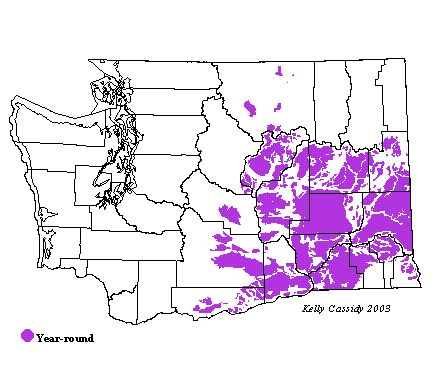 Gray Partridges are common throughout eastern Washington in shrub-steppe and dry areas planted with wheat. They are found mostly below the Ponderosa pine zone, but in Spokane and Lincoln Counties, they extend into Ponderosa pine forests. They are rarely found in the hot and arid lower Columbia Basin. Regular introductions make it difficult to predict where they will be, and the range limits are constantly changing.