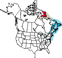 Only one of the two subspecies of Iceland Gull is regularly found in Canada and the United States—L.g. kumlieni, commonly known as Kumlien’s Gull. (The other subspecies, L.g. glaucoides, breeds in southern Greenland and winters in North Atlantic Europe.) Kumlien’s Gull breeds in the eastern Canadian Arctic, east and south of Thayer’s Gull with which it sometimes hybridizes where their ranges meet. Most Kumlien’s Gulls winter in Atlantic Canada and New England, with some straying down the Atlantic Coast and to the Midwest and small numbers farther west. The pattern is the opposite for Thayer’s Gull, which winters primarily along the West Coast with small numbers ranging across the continent as far as the Atlantic Coast.