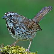Song Sparrows are solitary and highly territorial during the breeding season, but are found in loose flocks during migration and winter. They forage mostly on the ground, sometimes scratching the soil. They will come to bird feeders with adequate cover close by. These birds sing almost all year, and respond to 'pishing.'